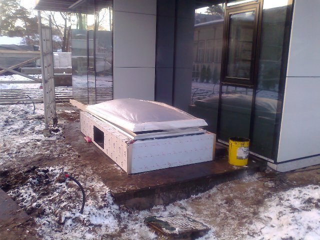 3 января 2012 года – Латвия, Рига, ул.Вестиенас 2 – реконструкция – привезены люки LAMILUX для естественного освещения и естественной вентиляции. Наше основание сделано из стекловолокна и утеплено в заводских условиях полиуретаном и обладает Коэффициентом теплопроводности 0,5 W/(m2К).